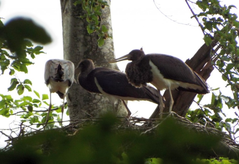 Barza neagră (Ciconia nigra) în Munții Baraolt. În acest an au fost crescuți doar doi pui. Sunt aproape gata de zbor.