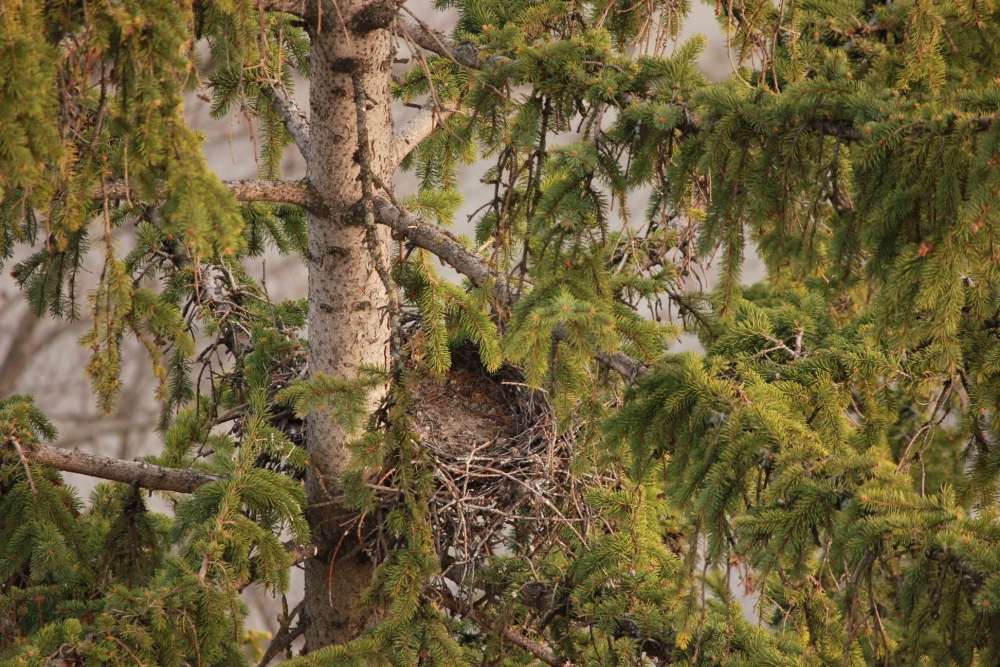 Cuibul folosit în ultimii ani de către o pereche de vânturel roșu (Falco tinnunculus) este încă gol.