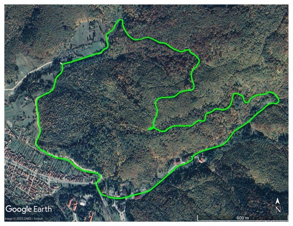 Staţiile traseului: 1 - panoul de pornire, 2 - ursul brun, 3 - arinul, 4 - păduri cultivate, 5 - habitat umed, 6 - stejarul şi gorunul, 7 - ciuperci din zonă, 8 - carpenul, 9 - fagul, 10 - lemnul mort, 11 - eroziunea şi travertinul, 12 - geologie: vulcanismul neogen, realgarul, 13 - geologie: flişul, 14 - molidul.