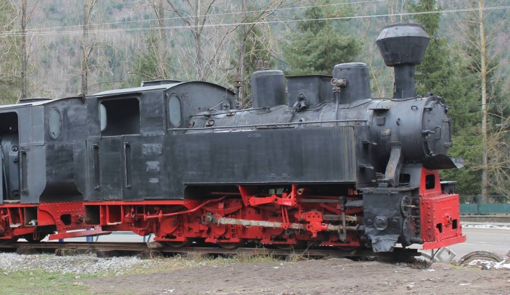 - locomotiva este garată la Covasna, în spatele parcării din fața hotelului Clermont